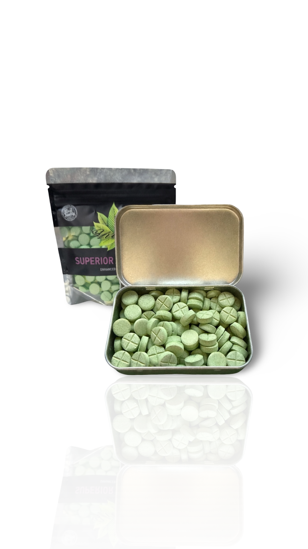 Ingredients:7-Hydroxymitragynine, natural binders and fillers, microcrystalline cellulose, magnesium stearate, silica oxide, di-calcium phosphate, food-grade colorant.